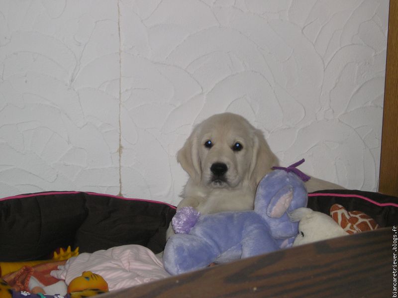 Eden est arrivée depuis une semaine et tout se passe très bien. Nous avons été pour la première fois à la plage hier matin pendant une éclaircie. Elle a été surprise pendant 2 minutes par le bruit de la mer déchaînée et le fort vent puis après s'est bien amusée. Aujourd'hui, enfin il fait beau et nous allons y retourner cet après midi. La belle Eden Rose est joyeuse le jour et toujours sage la nuit.
